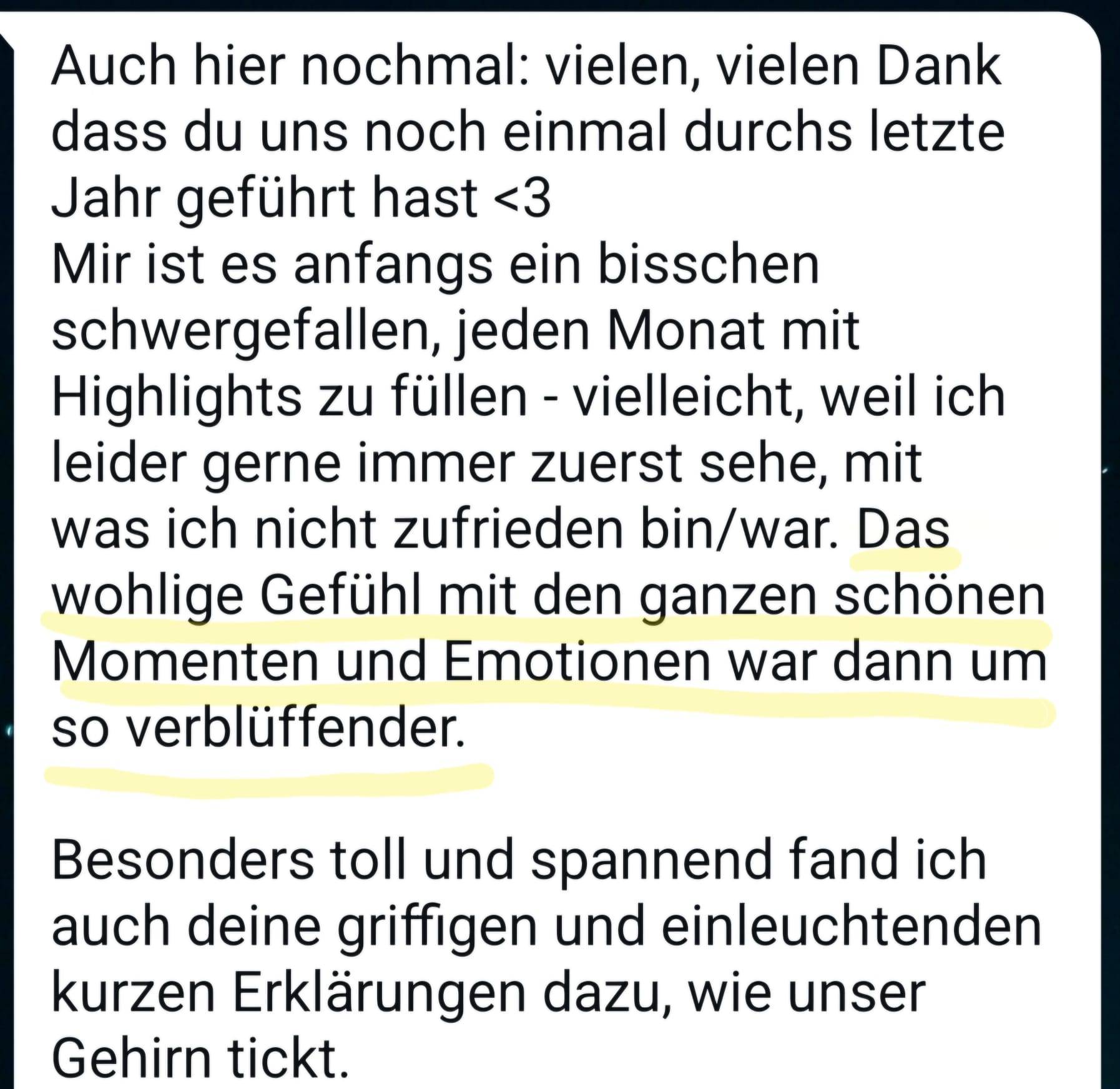 Vielleicht wolltest du dein Jahr bewusst abschließen.